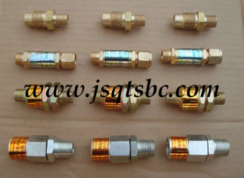 適用于乙炔,丙烷,氧氣,氫氣,天然氣,液化氣,等各種工業氣體,接在氣體匯流排或燃氣低壓管道上,若發生回火時,內部微孔熄火裝置能確保熄滅火焰,內設單向閥能夠在危急時刻立即切斷氣源,確保回火不能經由管道進入氣源設備內。適用于氣體匯流排、燃氣集中供氣管道。按工作原理分為干式和水封式,按使用介質可分為天燃氣、乙炔、丙烷、氫氣、氧氣等工業氣體回火防止器! 回火防止器 是裝在乙炔壓力表后接管線處,對氣焊氣割過程中發生的回火起到防止的作用.避免火焰進入氣瓶,發生.