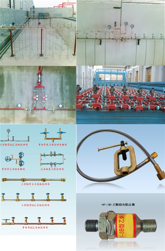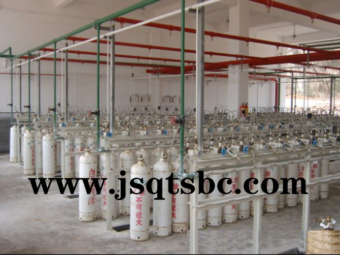 充灌氧氣時在進入集容管前,下部裝有氣水分離器一個,以便及時在充瓶前分離氧氣中的水份,凈化氧氣的純度。防倒鏈是用于圍圈氧瓶起固定作用的。氣體匯流排是將數個氣瓶分組匯合后進行減壓,再通過主管道輸送至使用終端的系統設備,主要用于中小型氣體供應站以及其它適用場所。