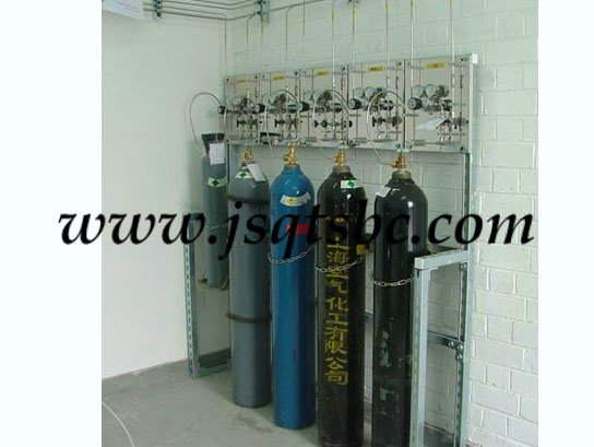 高純氣氣體匯流排:指瓶裝高壓氣體,通過此設備減壓到一定的使用壓力,是集中供氣體的一種設備。匯流排由左右兩根匯流主管道組成,中間有四只高壓閥門,分別控制左右兩組匯流管,每組有相當數量的分閥,軟管及卡具連接氣瓶,中間裝有一塊高壓表,用來檢測匯流管內的壓力,高壓閥門上方分別有兩組減壓器,以便控制調節使用壓力及流量,減壓器上方分別有兩只低壓閥門,用來控制兩排匯流切換時的低壓氣體,匯流低壓主管道裝有一只低壓總閥門,用來控制低壓管道的氣體。
